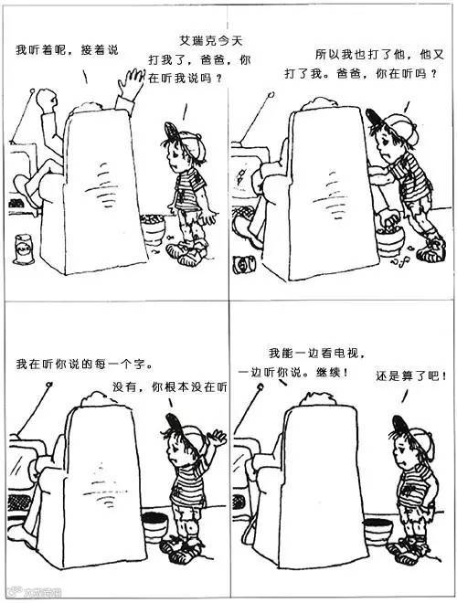 嘴上说在听,其实心不在焉。孩子跟家长说话时,家长眼睛不离电视、手机。你是孩子,也会觉得很挫败、气馁吧。所以孩子就“还是算了吧”,天长日久,他就选择“闭嘴”了。