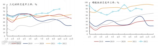 图:三元材料&磷酸铁锂开工率(单位:%)