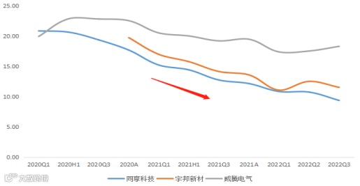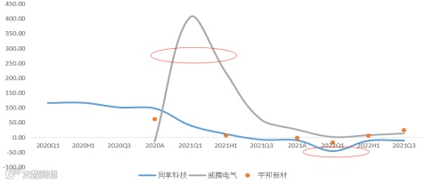 从毛利率变化趋势来看,宇邦新材、同享科技在2020年以来均处于下滑趋势,原因是主要原材料铜材价格上升(销售价格与原材料价格无法完全同步),叠加卫生事件影响,境外订单供货周期拉长所致。