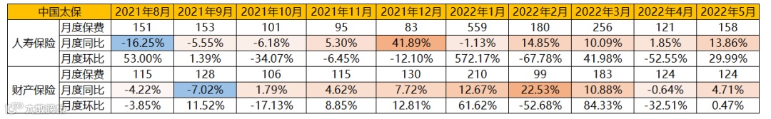 2022年1-6月,寿险保费收入1491 亿元(同比+5.4%)、产险保费收入918 亿元(同比+12.2%),其中,6月份寿险保费217亿元(同比+7.4%)、产险 177 亿元(同比+25%)。