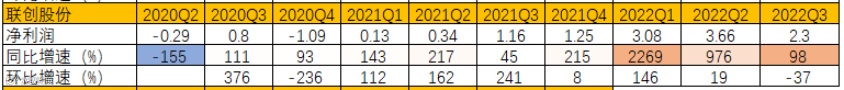 图:联创股份季度业绩