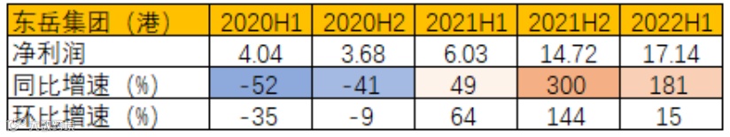 图:东岳集团季度业绩