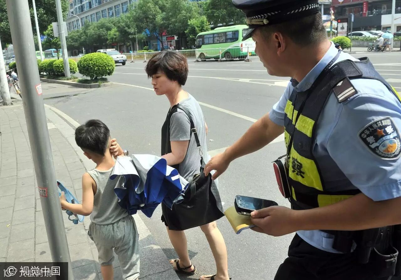 2013年6月1日,福州,一名带着孩子的家长在过马路时闯红灯 / 视觉中国
