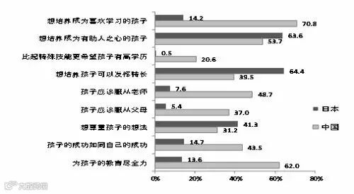 日本作为全世界公认的公共秩序整洁有序的国家,也是最注重子女社会化教育的国家之一。来自日本的《家庭子女教育问题》的民意测验调查显示:60%左右的日本父母都把思想品质教育放在突出位置,在对儿女的期待上,日本家长普遍希望培养孩子“有助人之心”,比较注重“与他人协调”等有关“群体”的教育内容。