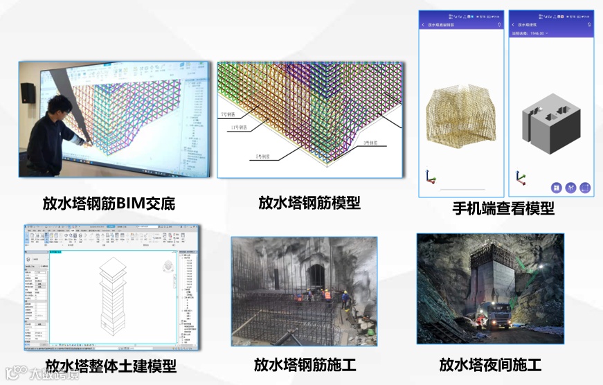 制作放水塔施工动画模拟演示,直观、生动地展示工艺及其施工要点。模拟的目的有两个,第一个是进行用法工艺的论证,确保施组中工法工艺在项目实际作业中可行;第二个是进行三维可视化交底,交底对象主要为领导及项目一线作业人员。