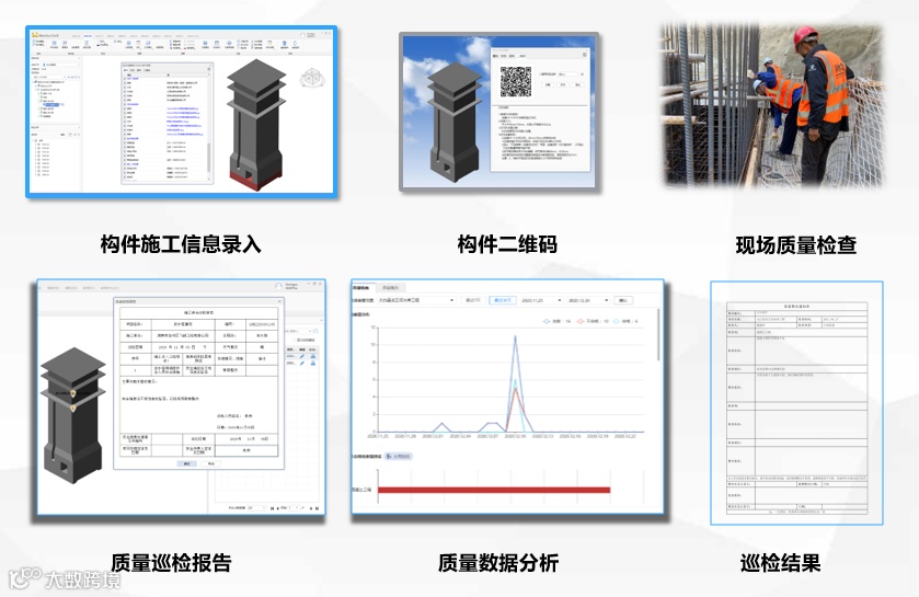 可在平台中生成构件二维码,便于随时查询,实现动态质量管理;后台对质量数据进行大数据分析,生成图表直观反映问题,为纠偏提供数据支撑。