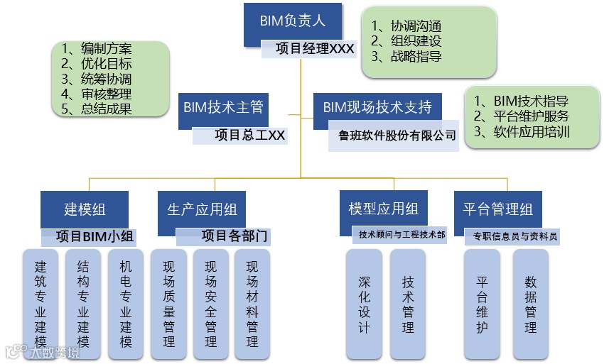 为了保证项目实施落地,项目精心组建了BIM团队,明确了每一个人的岗位职责。
