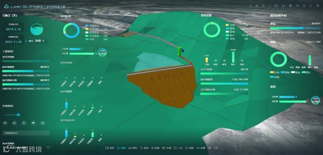 项目、进度、资料、协同、投资、环境、人员、视频、车辆量化展示