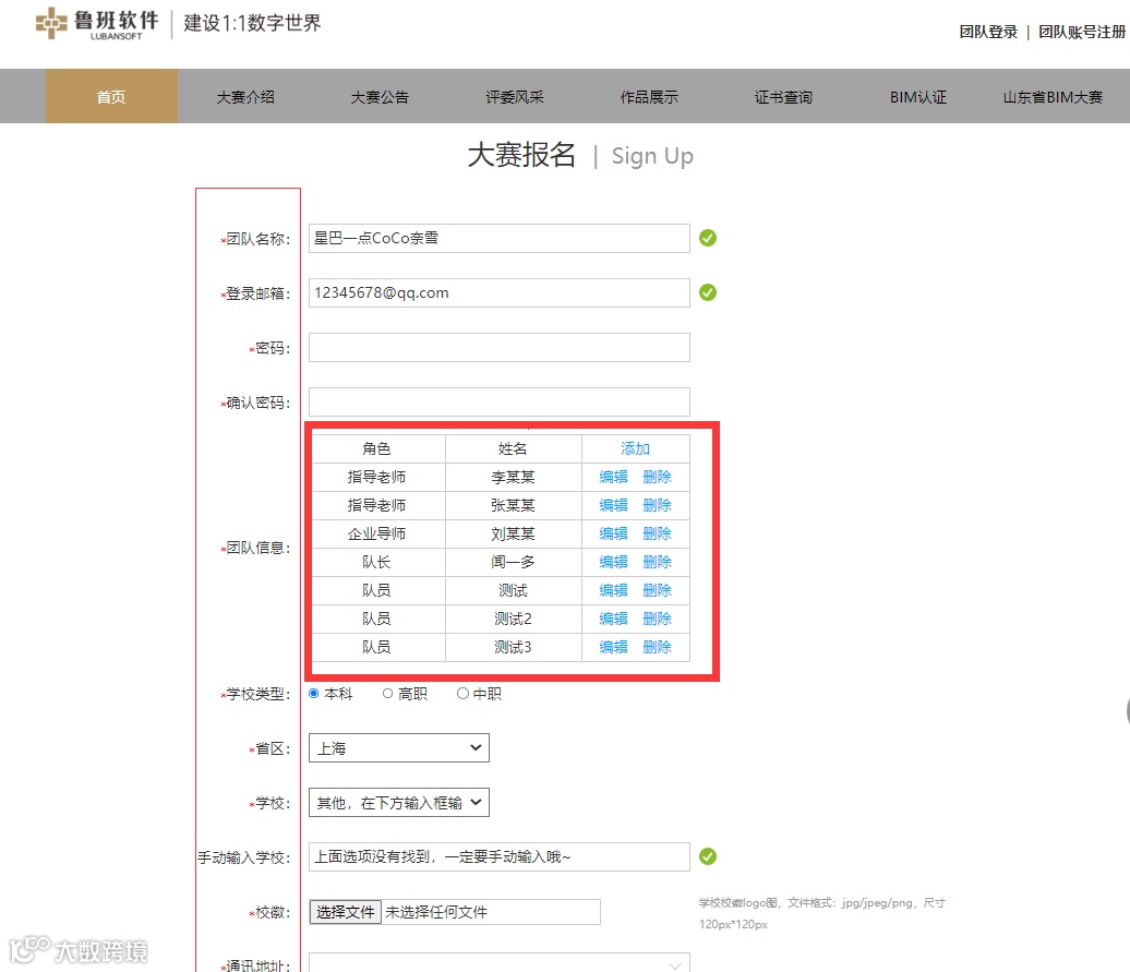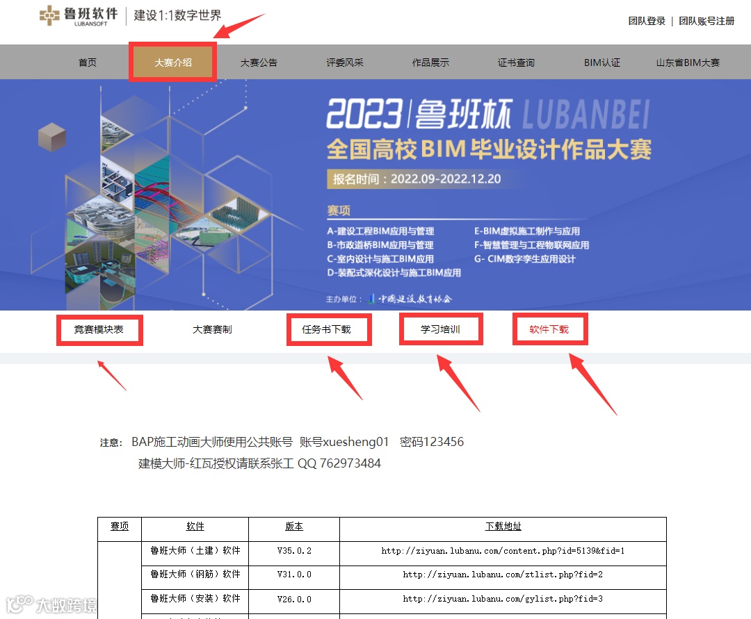 第一步:准备好盖章的报名表,登录大赛官方网站:http://bim.lubanu.com/