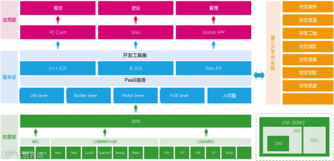 4.促进参建单位数字化转型。当前建筑企业的数字化程度相对较低。通过以BIM+GIS数字场景为基础,结合无人机、IOT设备,实现数据采集多元化,功能便捷化、应用场景立体化,为企业数字化转型添砖加瓦,推动建造过程智慧化。