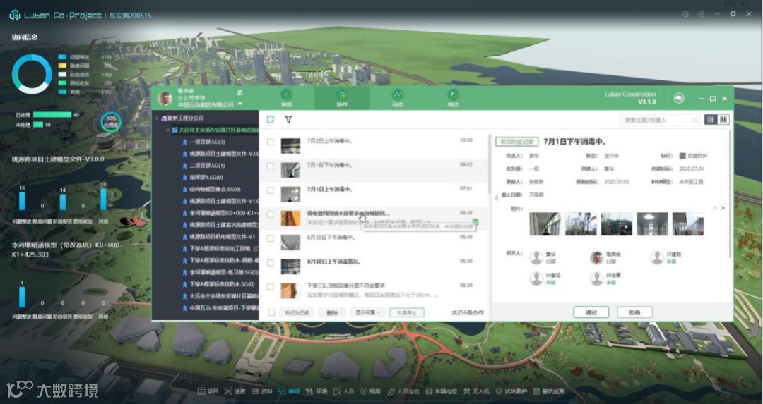 4.协同管理。基于平台线上完成了各方报检报验、专项检查等传统线下工作流。本项目60余家参建单位共554个人员,共完成了2890个工作审批的流程闭环(如图23所示)。