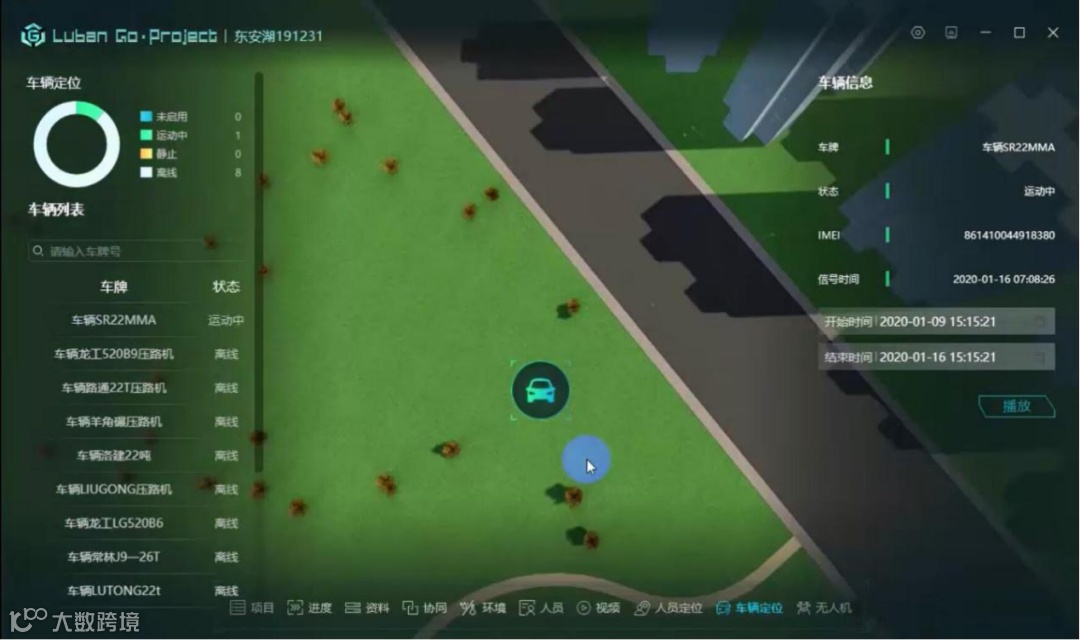 3.车辆定位。通过在主要作业车辆上安装定位装置,追踪车辆行动轨迹(如图17所示),优化线路规划方案,最大限度减少交通冲突点,提高机械设备安全管理及运输效率。