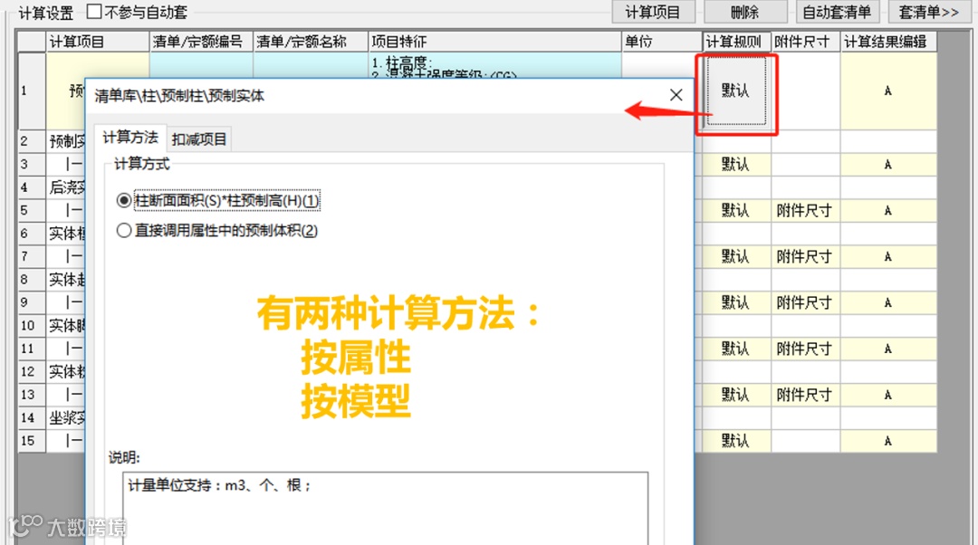 支持两种计算方法,可以直接读属性体积,也可以根据模型计算