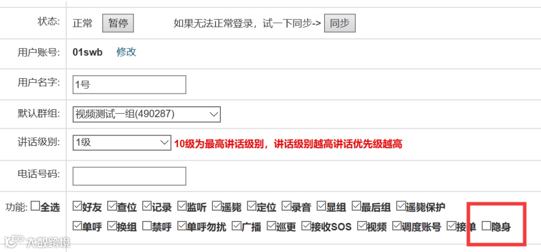 2. 企业平台用户新增隐身权限设置。