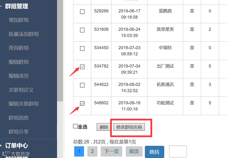 企业平台查询群组,新增批量修改群组名称。
