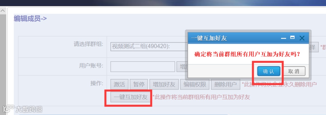 5. 企业平台群组管理->编辑成员,新增将群组成员一键互加好友选项。
