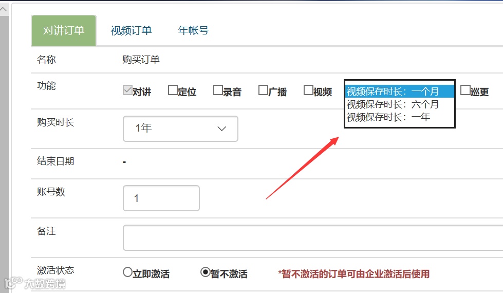 包含视频功能的订单新增视频保存时间设置,具体收费情况请到交易记录中查看。