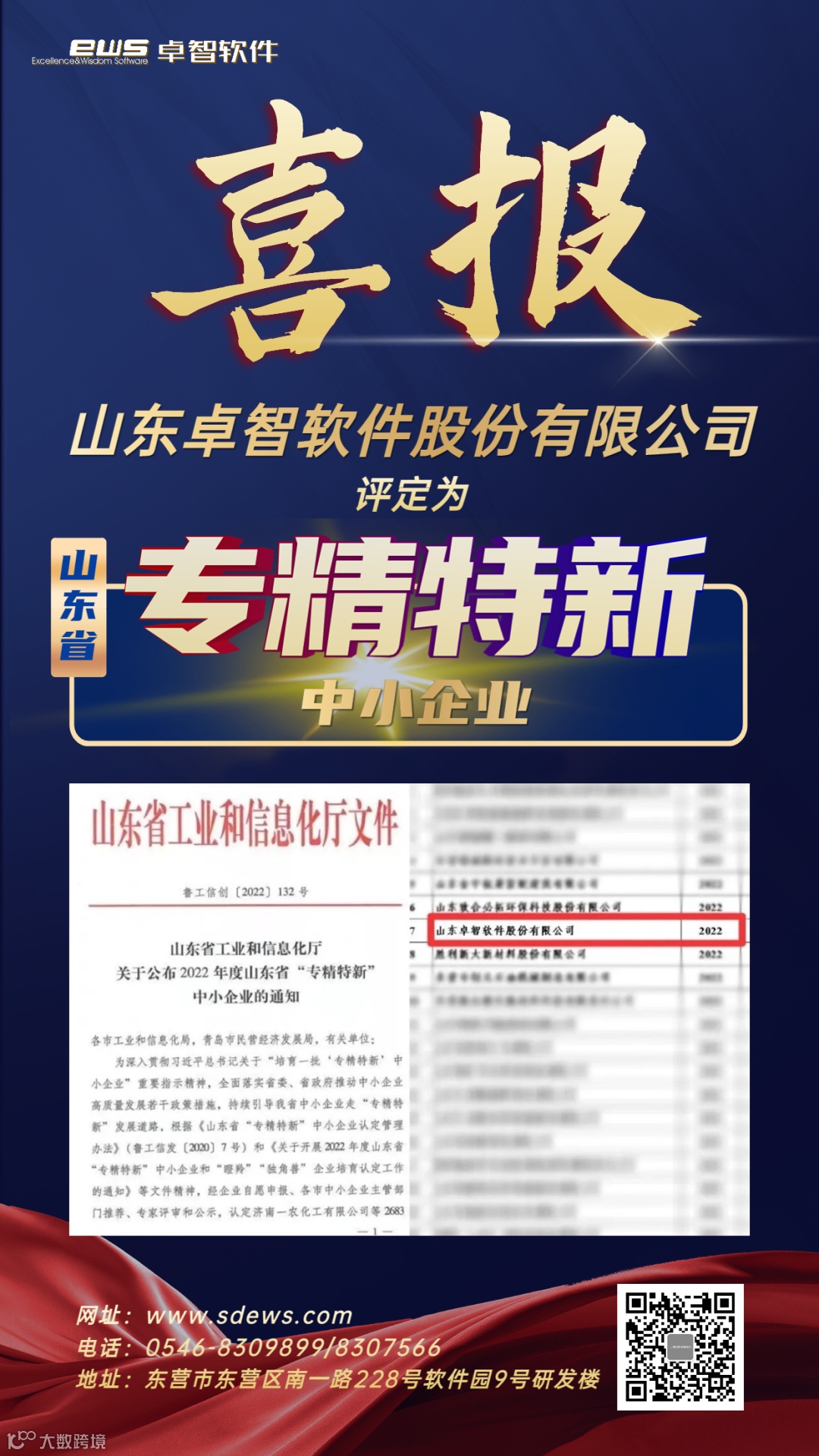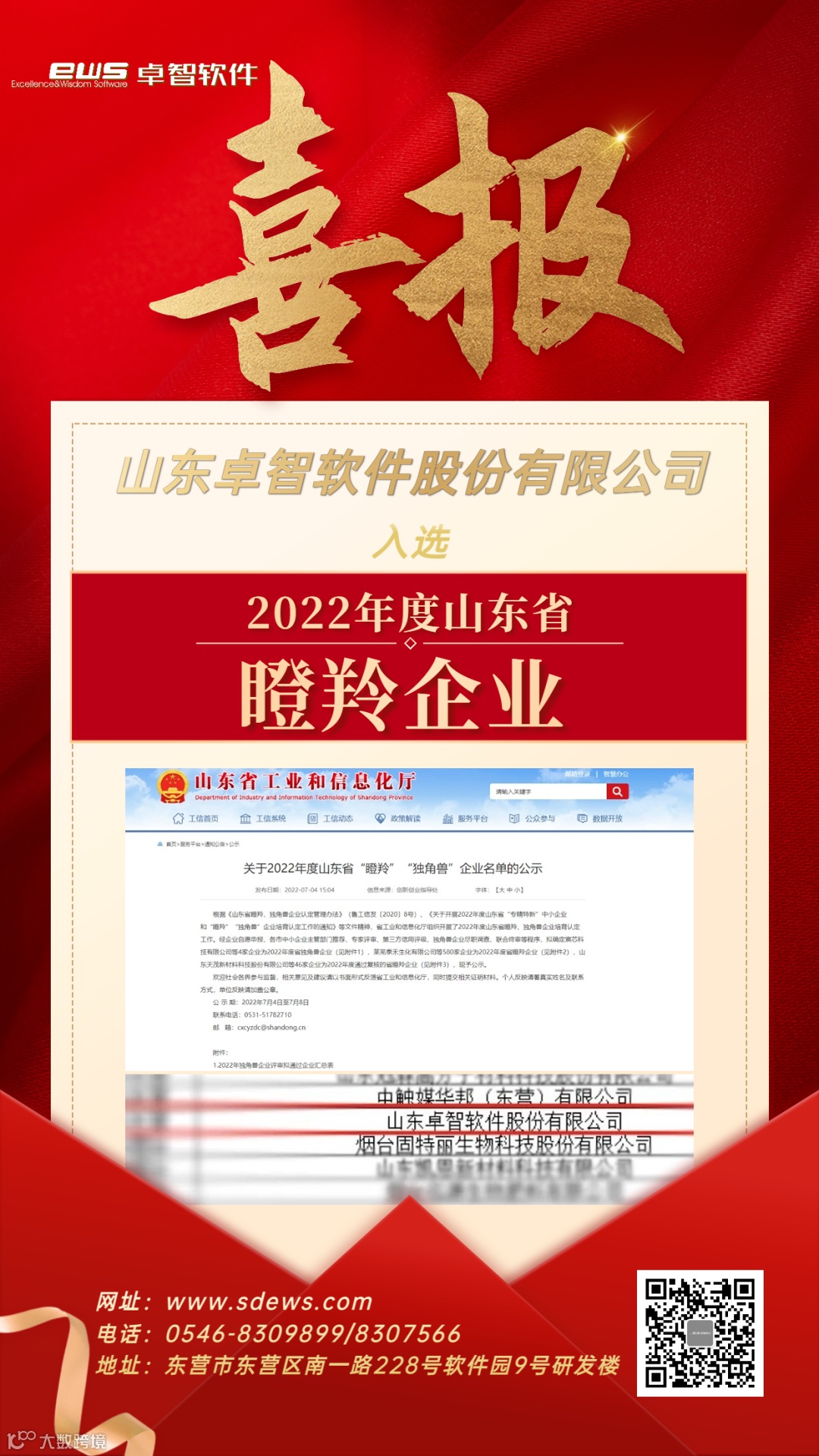 卓智软件成功入选山东省“专精特新”企业与“瞪羚企业”名单,得到省政府的认可和肯定,是公司发展实力的体现,同时也是公司坚持走“专精特新”道路的阶段性成果。