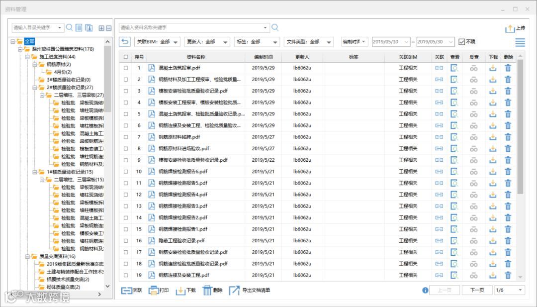 资料管理。利用BIM技术将施工管理中、项目竣工和运维阶段需要的资料档案(包括验收单、合格证、检验报告、工作清单、设计变更单等)等列入BIM模型中,便于后期运维阶段资料存档完整性,以及查阅的便捷性,实现高效管理与协同。