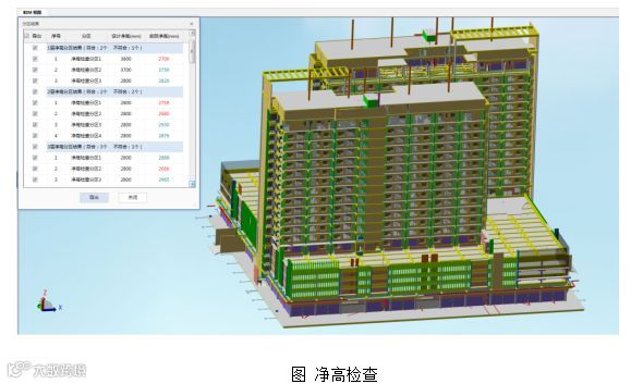 设置净高检查规则,快速检查出不符合净高要求的地方。还可以按设计净高的不同,按楼层将建筑划分为不同的净高分区,用不同的颜色填充,可快速直观的展现各净高分区的结果并导出。