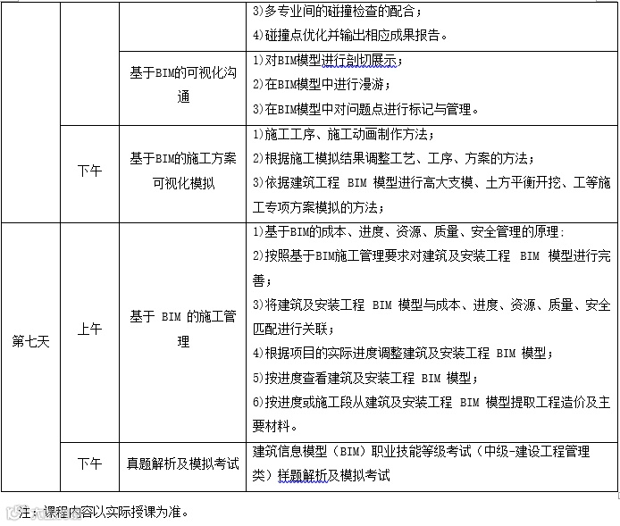 附件1:《2020年全国高校“建设工程管理BIM应用”师资培训班》培训内容