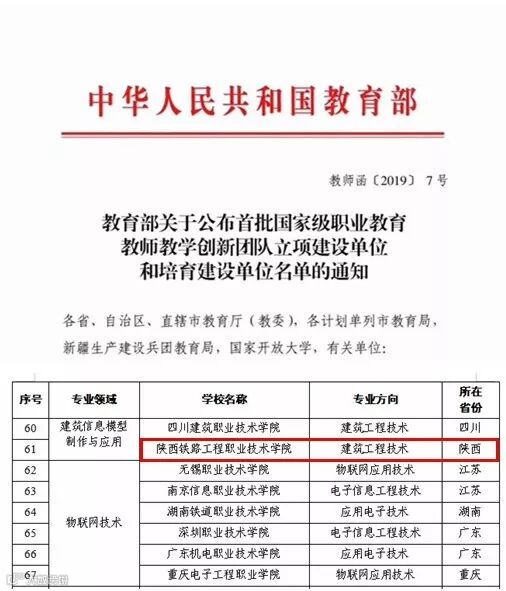 陕西铁路工程职业技术学院建筑工程技术专业1986年开始招生,专业特色优势明显,是中央财政支持的国家重点建设专业、优质高职院校建设骨干专业、获批“双高计划”高水平专业群。2019年入选教育部首批国家级职业教育“建筑信息模型制作与应用领域建筑工程技术专业”教师教学创新团队立项建设单位。