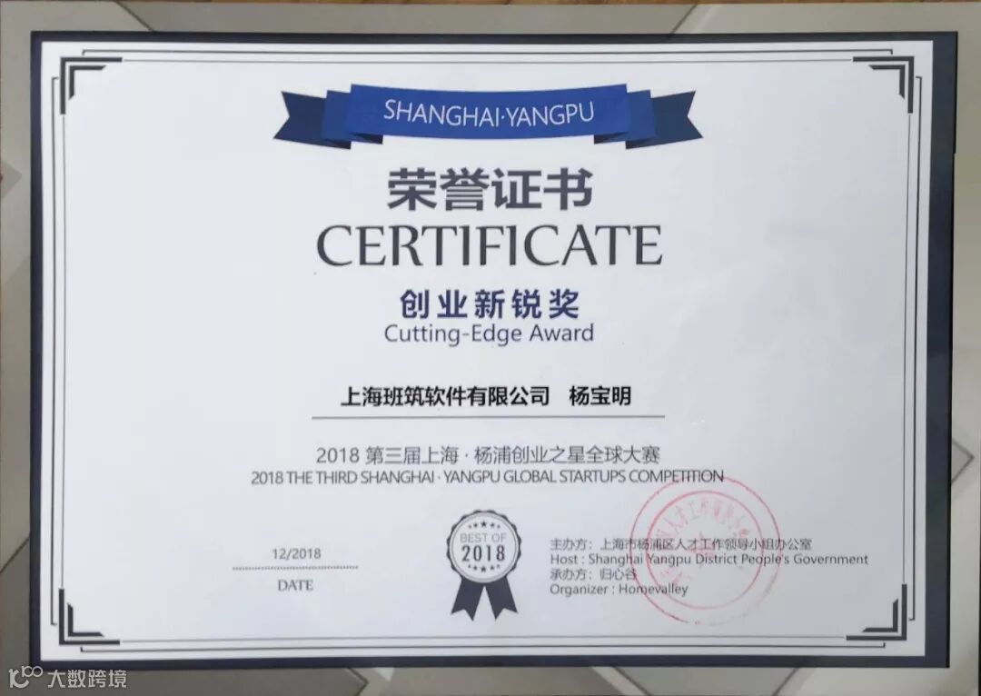 本届大赛历时三个多月,由业内知名投资机构组成的专家评审团,经过初赛、复赛、半决赛、总决赛四轮评选,在国内外共计16场大赛中,鲁班软件子公司——班筑软件斩获“创业新锐”奖。
