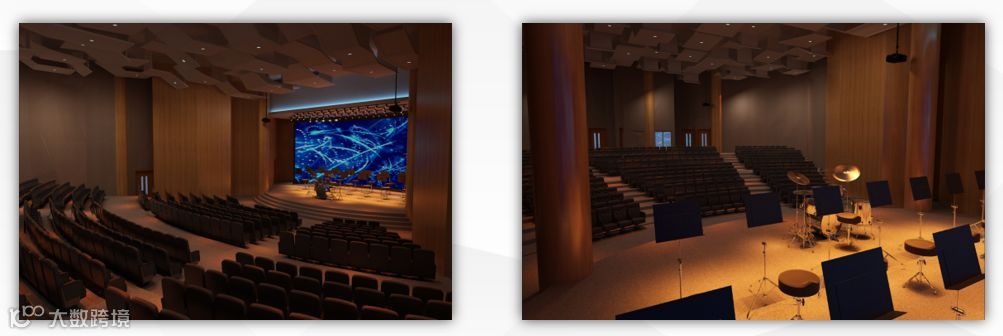 利用多功能厅精装设计图纸,三维模拟多功能厅内部装饰,生成精装效果图,提前挖掘内部精装不够合理、美观的相关问题,协作内部精装的深化设计。