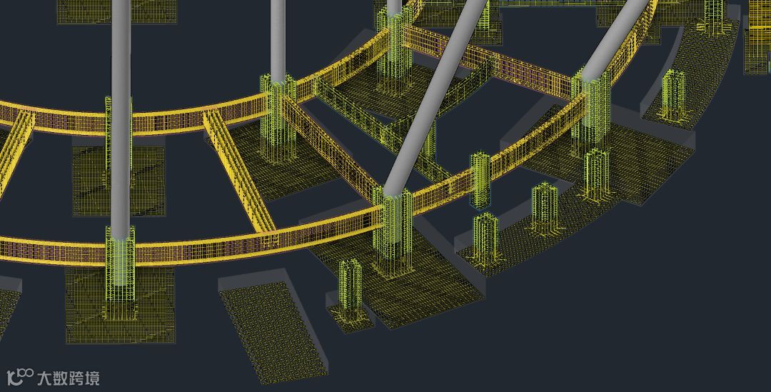 利用钢筋BIM模型三维可视化,查看基础、柱、地梁的钢筋三维排布,辅助现场钢筋绑扎质量验收。