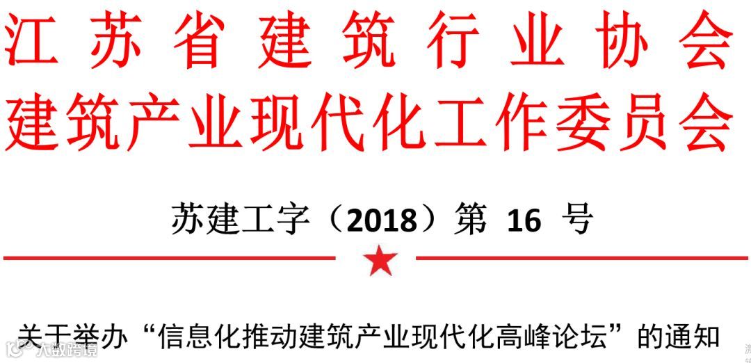 为进一步推动江苏建筑企业转型升级,率先实现建筑产业现代化,充分发挥信息化在企业管理、项目管理、互联网+建筑、物联网+建筑、智慧工地、实名制等领域运用和创新。经研究,定于9月27日在南京召开“信息化推动建筑产业现代化高峰论坛”,现将有关事项通知如下: