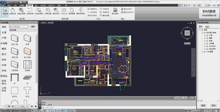 点击“工艺工法”按钮,一键可生成地坪、天花、墙体等工艺工法,也可导入企业自有工艺工法库,统一工艺工法出图标准,使企业出图更加标准。