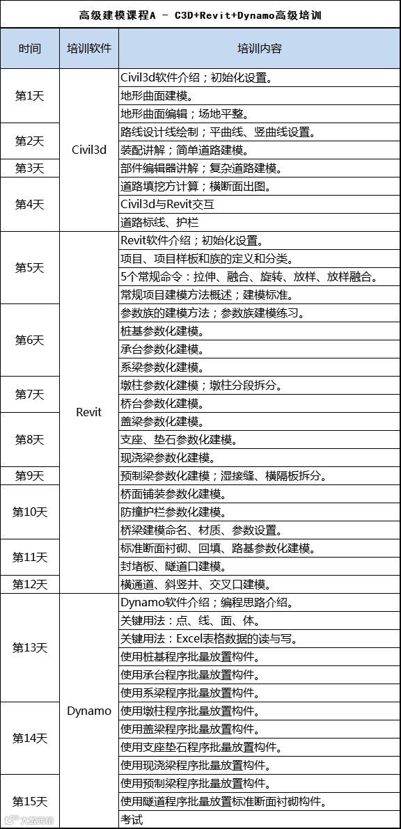 高级建模课程A - C3D+Revit+Dynamo高级培训班 |