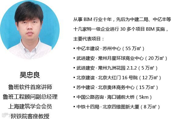 课程邀请行业资深理论与实战专家通过多个实际项目案例授课,讲授企业BIM发展战略、企业BIM中心建设、项目BIM团队建设、鲁班BIM应用流程及体系、鲁班BIM应用点、土建机电虚拟指导施工、路桥BIM应用等内容;组织BIM沙龙与讲师共讨BIM在施工阶段的实施疑难点。