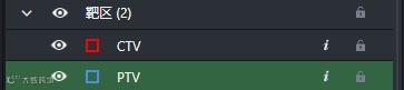 函数支持显示为“是”的ROI,表示该ROI与其它ROI之间有函数关联。如,CTV外扩5mm生成了PTV,保存为模板之后,PTV的生成方式就会显示为“函数支持”。在调用模板时,会先生成轮廓为空的CTV和PTV。在勾画完CTV后,选中PTV时,会看到列表右上角的<ROI表达式更新>按钮会点亮起,点一下它,外扩后的PTV轮廓就“刷”出来了。