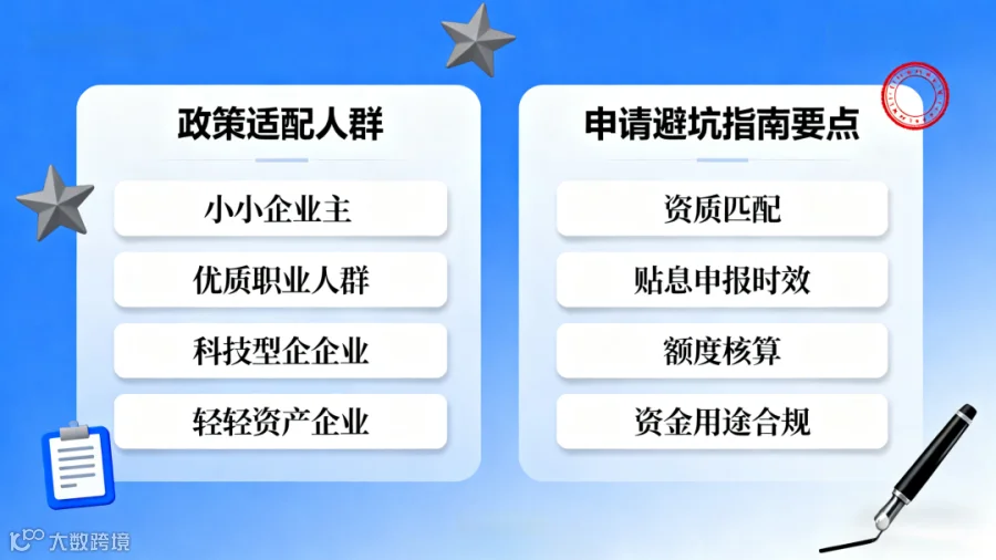 - 贴息申请:需在贷款存续期内按申报时间窗口提交材料,逾期视为自动放弃;