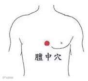 膻中穴在人体的中间部分,躯干0.618处为膻中穴,在两乳头连线中间。