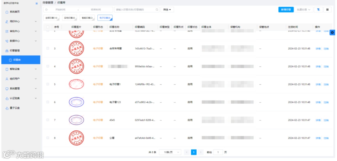 电子印章管理:系统可融入电子签平台能力,实现电子印章的全生命周期管理。