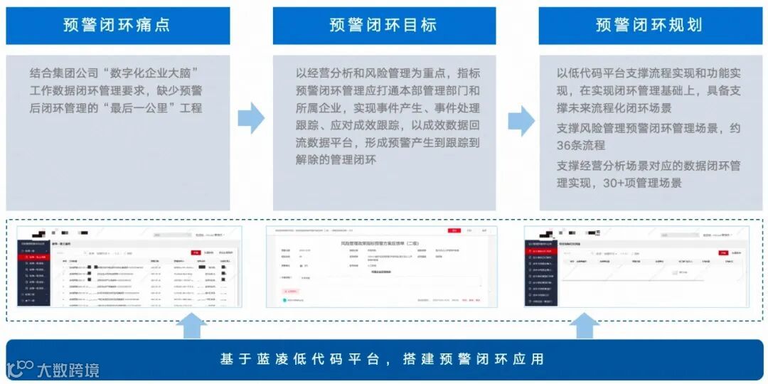 风险管理预警:支持3级预警,覆盖发起、响应、跟踪等7大环节,打造风险管理闭环。