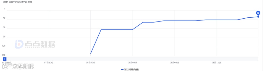 第25名《Math Weavers》本期新上榜,是一款益智类产品。游戏玩法为算数连线,将左侧的公式和右侧的结果相连即可。游戏内设计了多种模式和难度,但玩法并没有差异。游戏8号突然出现在榜单中,暂未发现背后的原因。