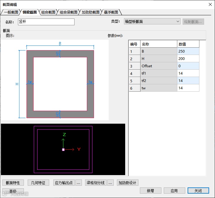 桁架桥建模助手参数包括尺寸参数和截面特性。