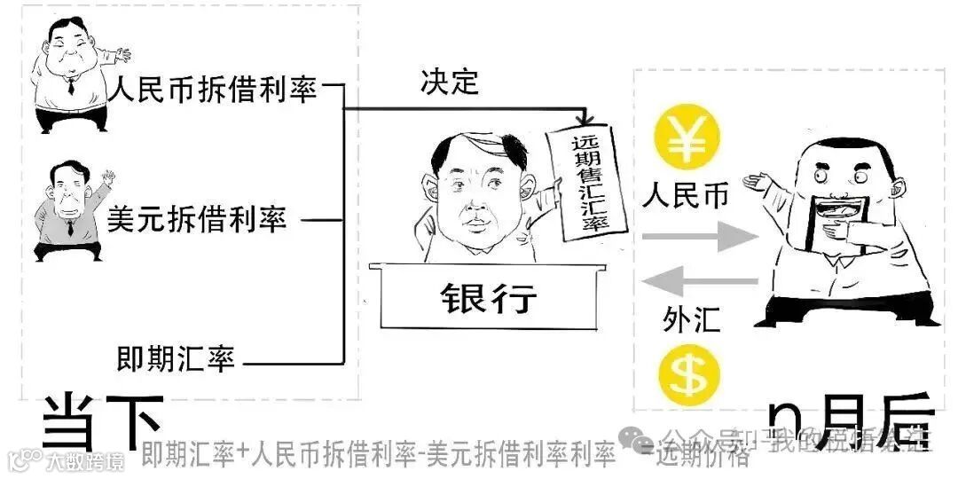该远期汇率并非基于银行对未来汇率的预测,而是通过即期汇率、人民币拆借利率和美元拆借利率计算得出。银行为履行远期合约,需提前在市场上购入美元并借入人民币,形成对冲操作,确保到期时具备足额外汇交付能力。