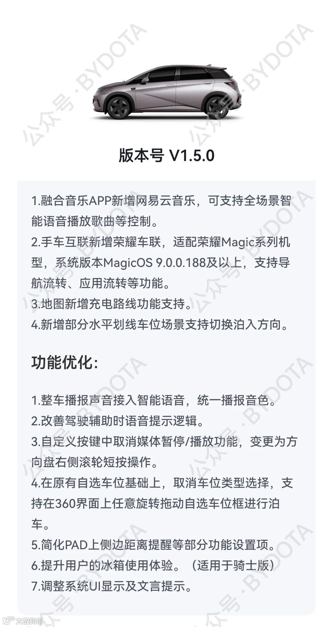 所有固件的版权归属BYD所有,公众号仅提供系统固件更新资讯的整理及资源分享。如怀疑固件来源的可靠性,可以联系您当地的4S售后门店获取升级。