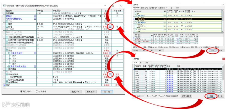 •【节能检查】不满足项可直接跳转【工程构造】进行调整,直至达标。