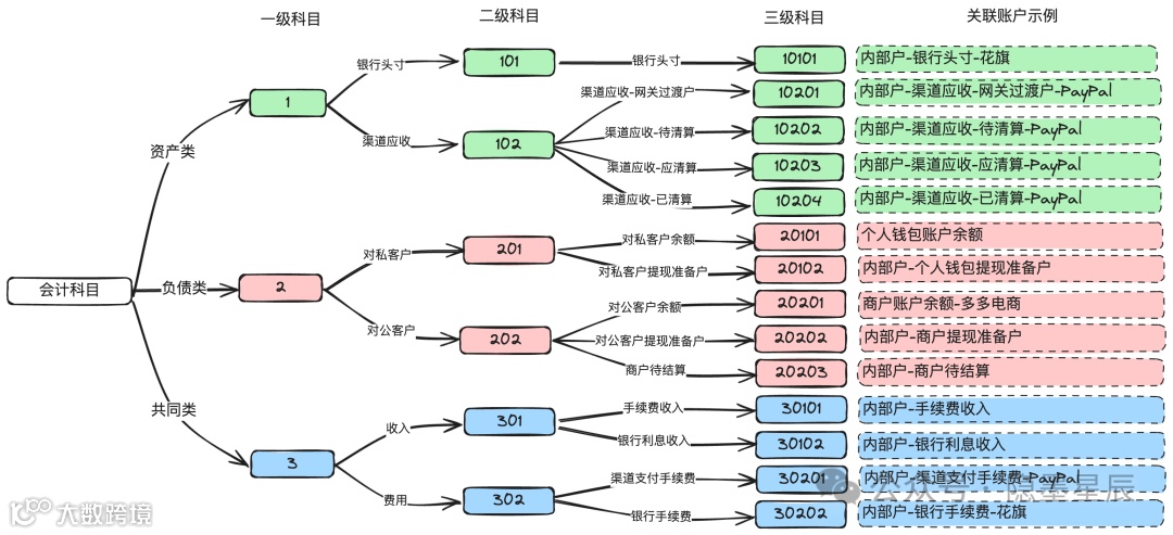 会计科目用于对会计要素(如资产、负债)进行分类,通常采用多级结构。支付系统一般使用三级科目,复杂系统可能扩展至五级。