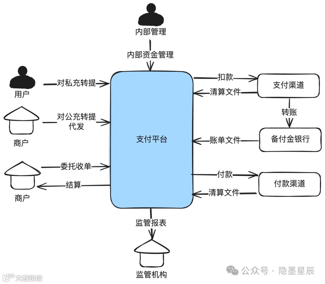 - 支付平台内部资金流将在详细图示中展示。