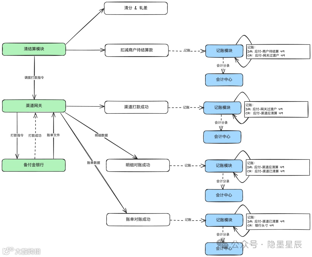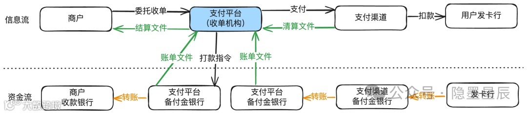 收单核心、支付引擎、渠道网关等模块处理信息流,而账务系统则专注于资金流管理。理解资金流是掌握账务系统的关键。