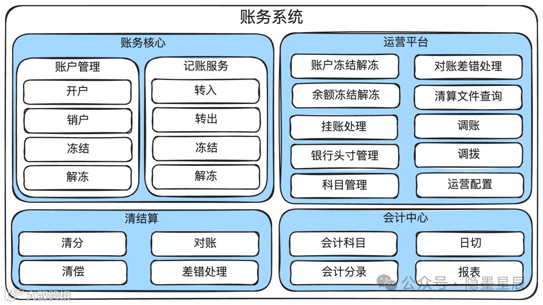 账务系统是支付平台的核心子系统,主要负责账户管理、资金记账、清结算处理及会计核算服务,确保资金流动的准确性与合规性。