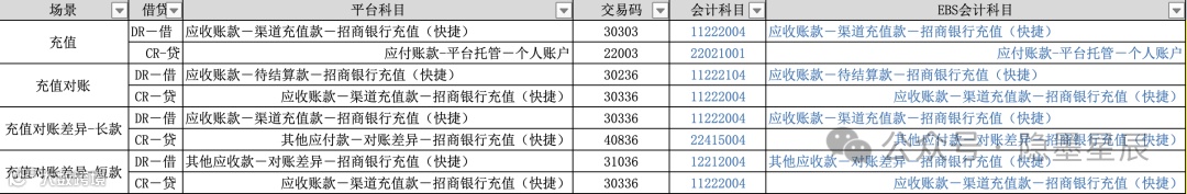 典型支付系统会计科目示例: