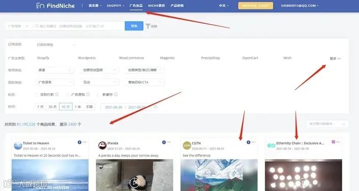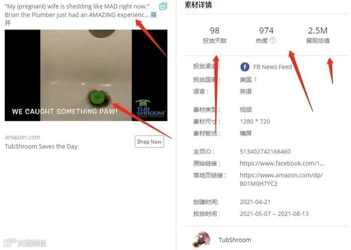 我们可以通过Bigspy工具找到其他的广告主在FB, ins等社媒平台上面打的广告。可以看到他们主推的产品,包括会发现很多有创意的产品。