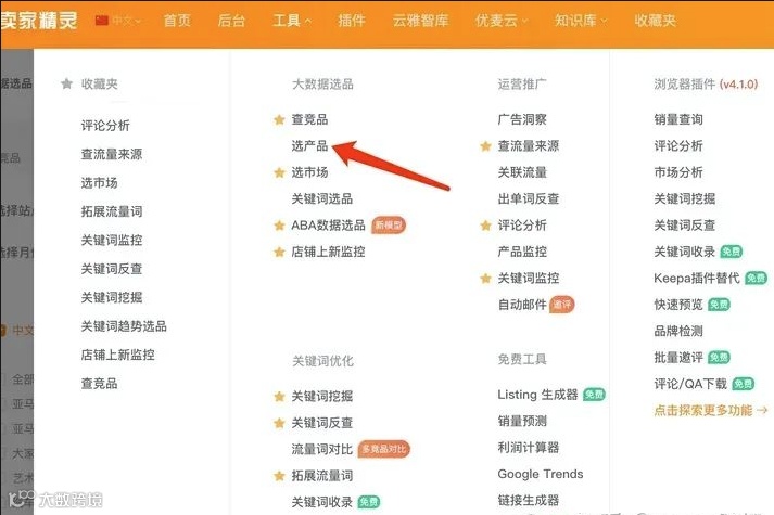 我们可以通过卖家精灵中的“选商品”栏目来直接找到需要的商品。